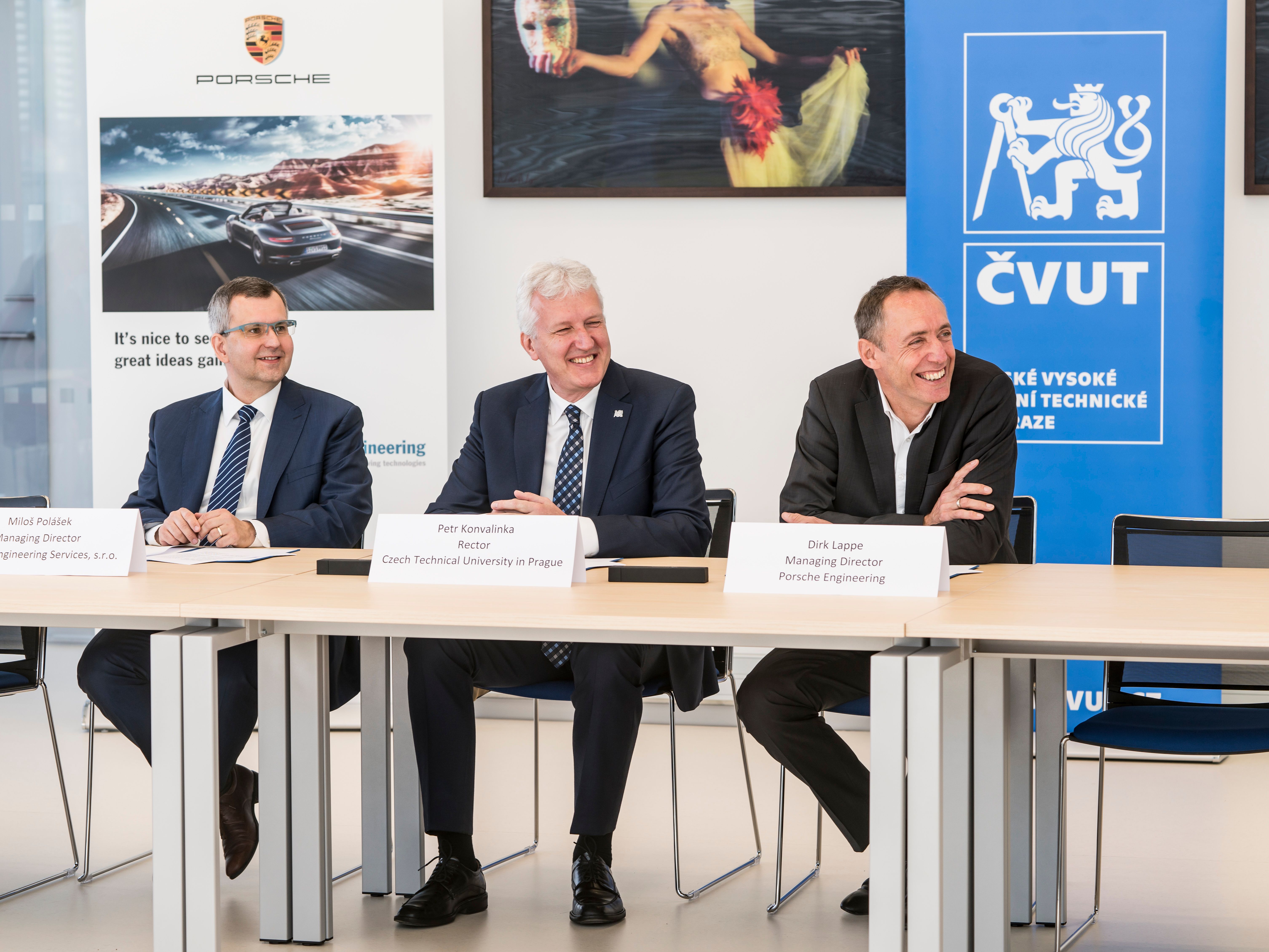 „Z prodloužení naší důležité spolupráce s ČVUT máme velkou radost,“ říká Dirk Lappe, výkonný ředitel společnosti Porsche Engineering a předseda představenstva společnosti Porsche Engineering Praha. „Díky partnerství s různými instituty a fakultami této univerzity jsme v uplynulých 16 letech mohli převádět nejnovější výsledky výzkumu do praxe.“